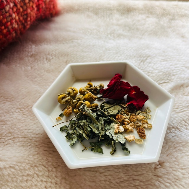 「つきのは」は季節に合わせてブレンドしたハーブティーです。 12月のハーブティーは、冬本番に向けて 心と体をそっと整えるブレンドをおつくりしました。 カモミールの甘さ、レモンバームの軽やかさ、 オレンジピールの暖かい香りに、 ローズとローズマリーをほんの少し。 力が入りやすい季節でも、 やわらかく深呼吸できるように。 忙しさの中でほっとひと息つけるように。 年末に向けてのセルフケアや大事な人とのお時間のおともに、 ぜひお楽しみください。 【年末特別セット】のご案内 今回はいつもより少し特別なティータイムのおともに手作りチャイのためのスパイスとレシピ、 そしてあたらしい年のおともに月の満ち欠けが感じられる卓上カレンダーをおつけします。 ⸻ セット内容 •ハーブティーブレンド「冬の深呼吸」(約5回分) •チャイスパイスセット(3種のスパイス-チャイ1回分、チャイのレシピ付) •月のめぐりを感じる卓上カレンダー 月の満ち欠けカレンダー ミチル mini 2026 •季節のセルフケアや浮かんでくることを綴ったつきのたより ◎ご購入特典◎ はじめての方: ジャーナリングやセルフケアの記録に活用できるオリジナルノートをおつけします。 リピートの方: 今のあなたに寄り添うサポートハーブをおつけします。 ご注文時に、備考欄にて最近のご様子や気持ちを一言お書き添えください。 ◎パーソナルブレンド◎ 体調や気分に合わせてブレンドをご希望の方はオプションに「パーソナルブレンドへの変更」を追加ください。 パーソナルブレンドでは、各月のブレンドイメージをベースにしながら 今の気持ちや体調に合わせたブレンドを調合し、お届けします。 パーソナルブレンドご注文時にはこちらのフォームにもご回答ください https://forms.gle/GKmmgHZSk92KYM3p7 ⸻ 原材料:レモンバーム、ジャーマンカモミール、オレンジピール、ローズ、ローズマリー 内容量:約5回分 *ほんのり爽やかさのあるやさしい味わいです。昼間にも夜にもお楽しみいただけます。 *体質や体調により、ごくまれにお腹がゆるくなる場合があります。初めての方は少量からお試しください。 *妊娠中・授乳中・お薬を服用中の方は、体調をみながら様子を見てお楽しみください。 *キク科(カモミール)にアレルギーをお持ちの方はご注意ください。気になる方はパーソナルブレンドをご活用ください。 *体質や体調によってハーブティーが合わない場合があります。不快感や違和感を感じた際は飲用を中止してください。 ⸻ 発売期間:2025年12月12日(金)8:00から 12月14日(日)23:59 発送予定:12月15日予定 お届け方法:クリックポスト 販売予定数:7セット